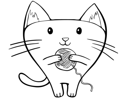Cat and Yarn Coloring Page