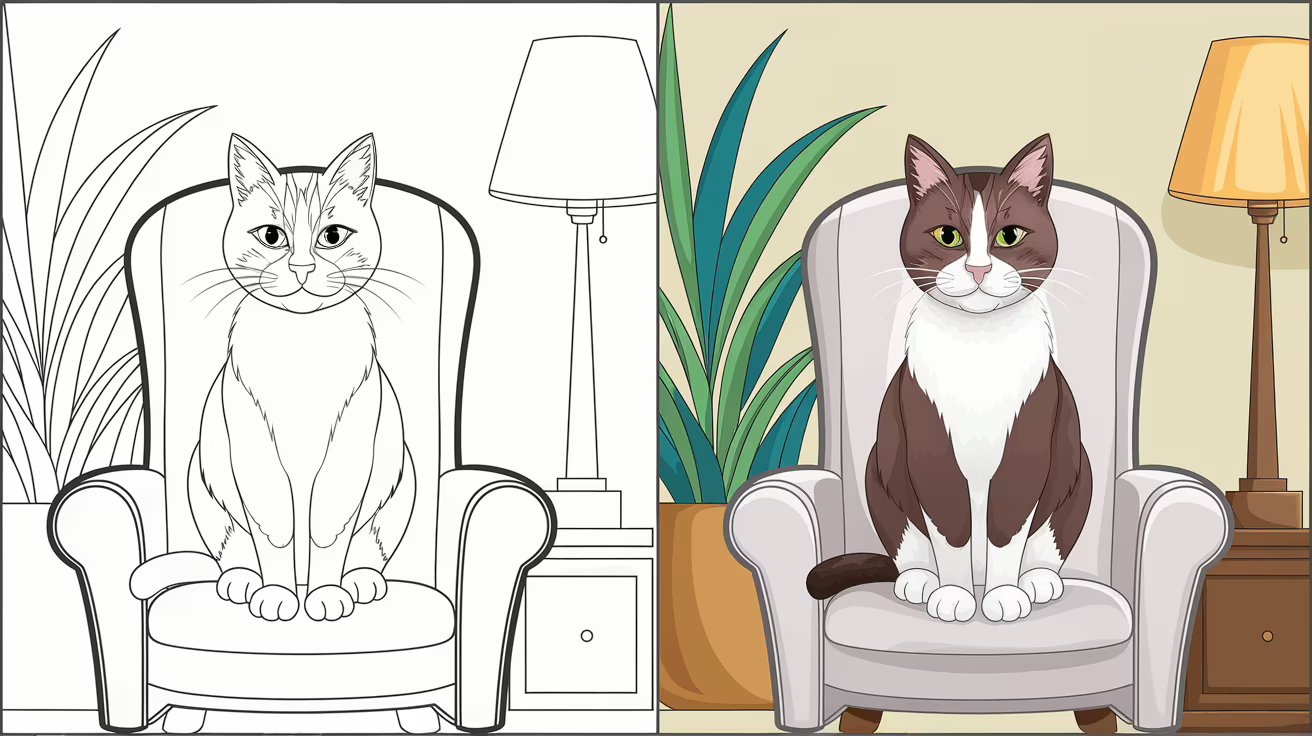 • Add the first: After cat, drawing, a final scene, like the forest, a garden, or outside space!