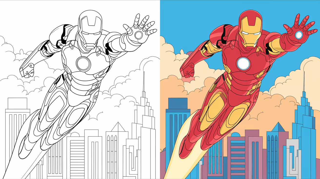 If you are working with many children, you can create a group of ironic coloring of a group that every child is in charge of coloring part of the page. For example, one child can focus on the armor, another on the background, and the other on the details like masks or iron equipment. Once everyone is done, they can put parts together to see the last master. This team’s teaching and cooperation when still takes good things and interactive.