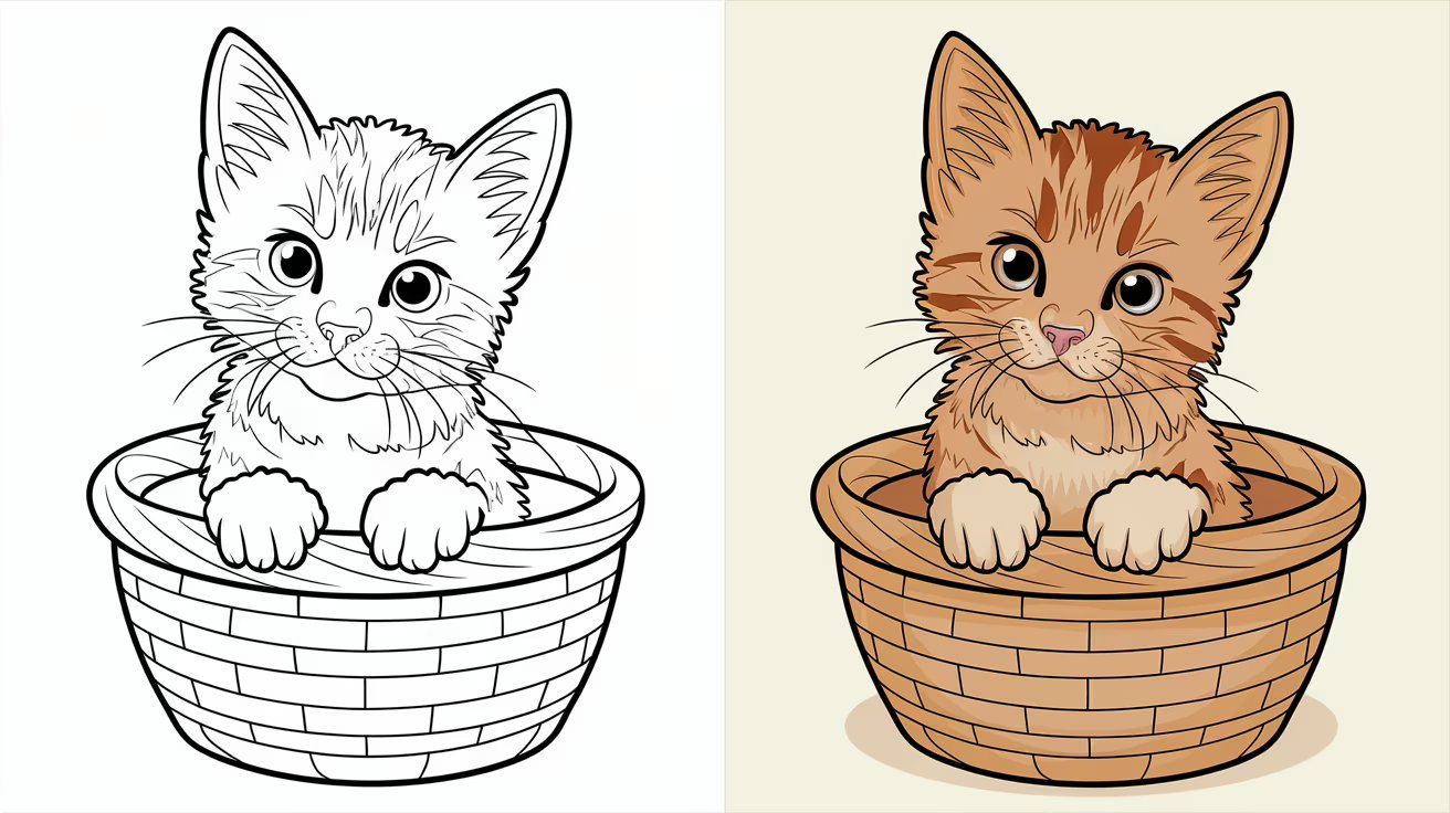 Our free printable kitten coloring pages come in a variety of styles, from cute kittens playing with yarn to snuggly kittens in baskets. These coloring pages are perfect for all ages, giving young artists the chance to improve their fine motor skills and express themselves creatively. Simply download and print, and let the coloring fun begin!