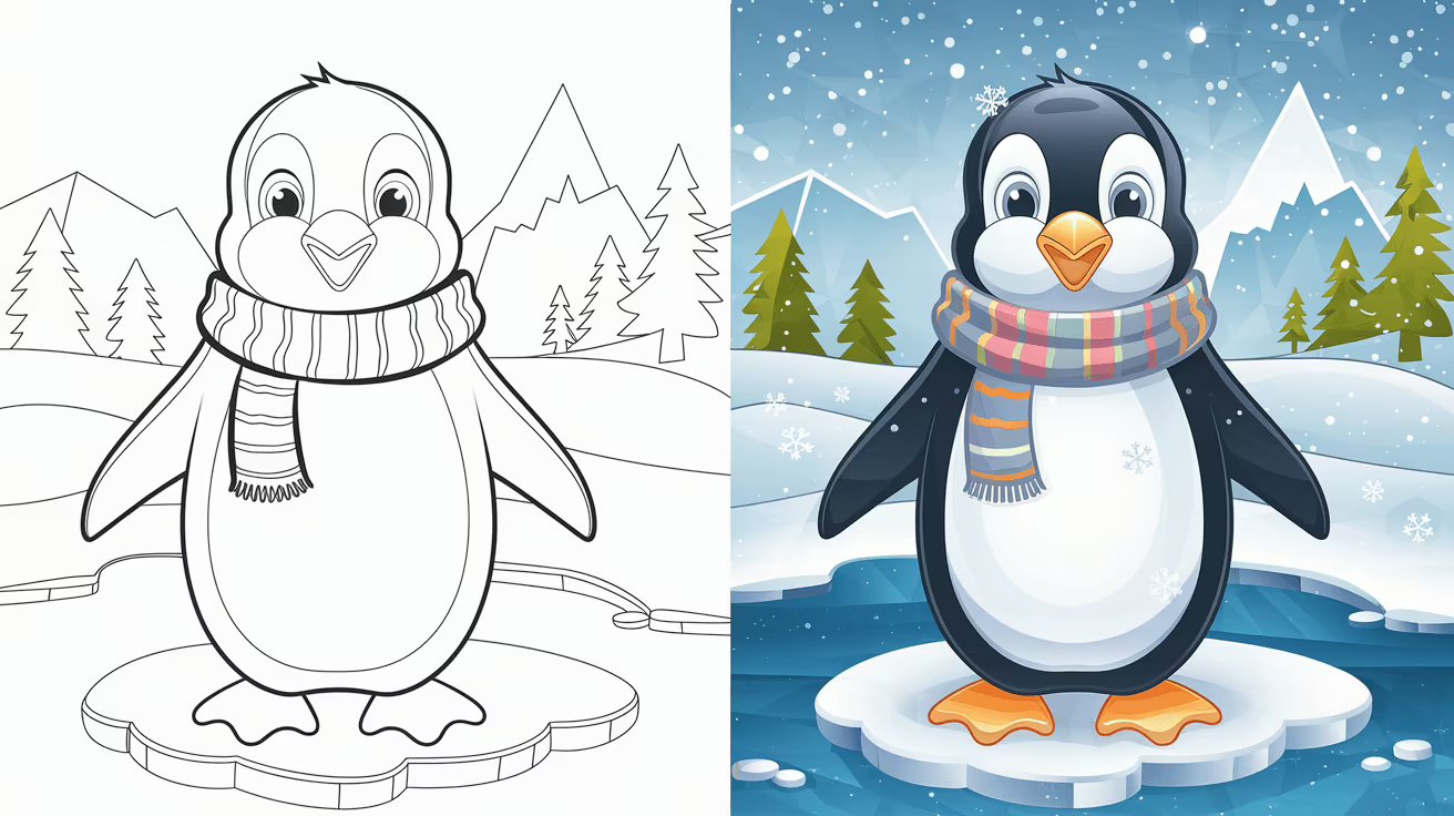 Draw a small Arctic fox or a seal near your penguin to make your pages even more dynamic. Kids will love creating a full Arctic scene with multiple animals interacting in the landscape.